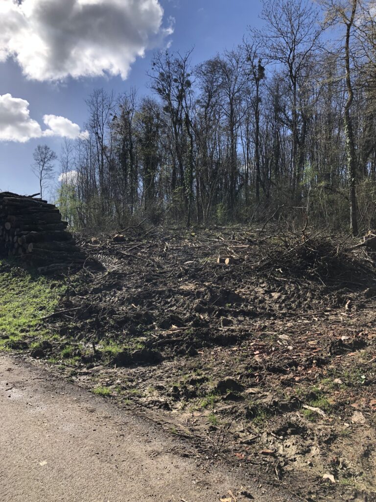 Tout a commencé en mars 2025. Pendant deux mois, une parcelle à l’entrée de la forêt est décimée : arbres arrachés, décapités, terrain défoncé, une coupe rase…et tout ça en période de reproduction des animaux, en particulier des oiseaux. Le résultat, c’est un paysage qui a désormais des airs de savane africaine. Contacté, l’ONF décline toute responsabilité car c’est une parcelle privée.
